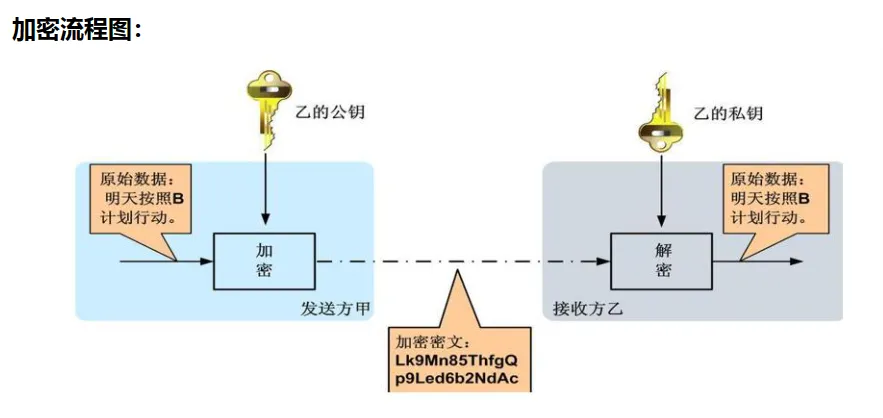 - 得到该公钥的甲方使用该密钥(公钥)对机密信息进行加密后再发送给乙方。