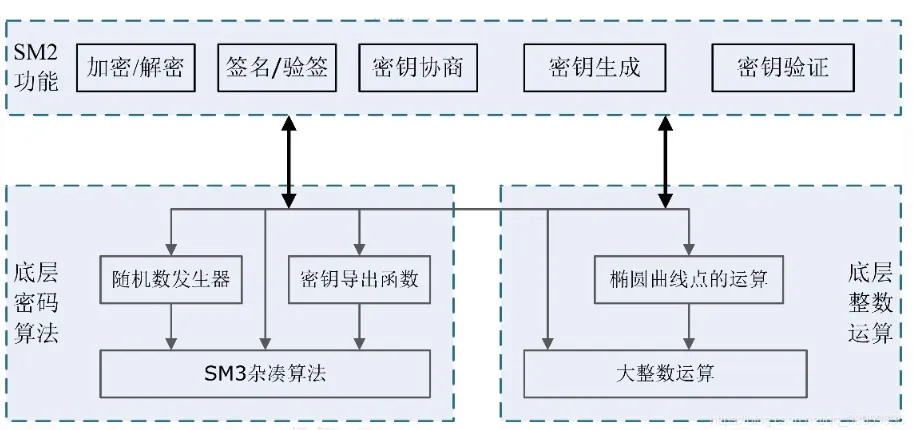SM2是国家密码管理局于2010年12月17日发布的椭圆曲线公钥密码算法。SM2算法和RSA算法都是公钥密码算法,SM2算法是一种更先进安全的算法,在我们国家商用密码体系中被用来替换RSA算法。该算法是我国自主设计的公钥密码算法,包括SM2-1椭圆曲线数字签名算法,SM2-2椭圆曲线密钥交换协议,SM2-3椭圆曲线公钥加密算法,分别用于实现数字签名密钥协商和数据加密等功能。SM2算法与RSA算法不同的是,SM2算法是基于椭圆曲线上点群离散对数难题,相对于RSA算法,256位的SM2密码强度已经比2048位的RSA密码强度要高。